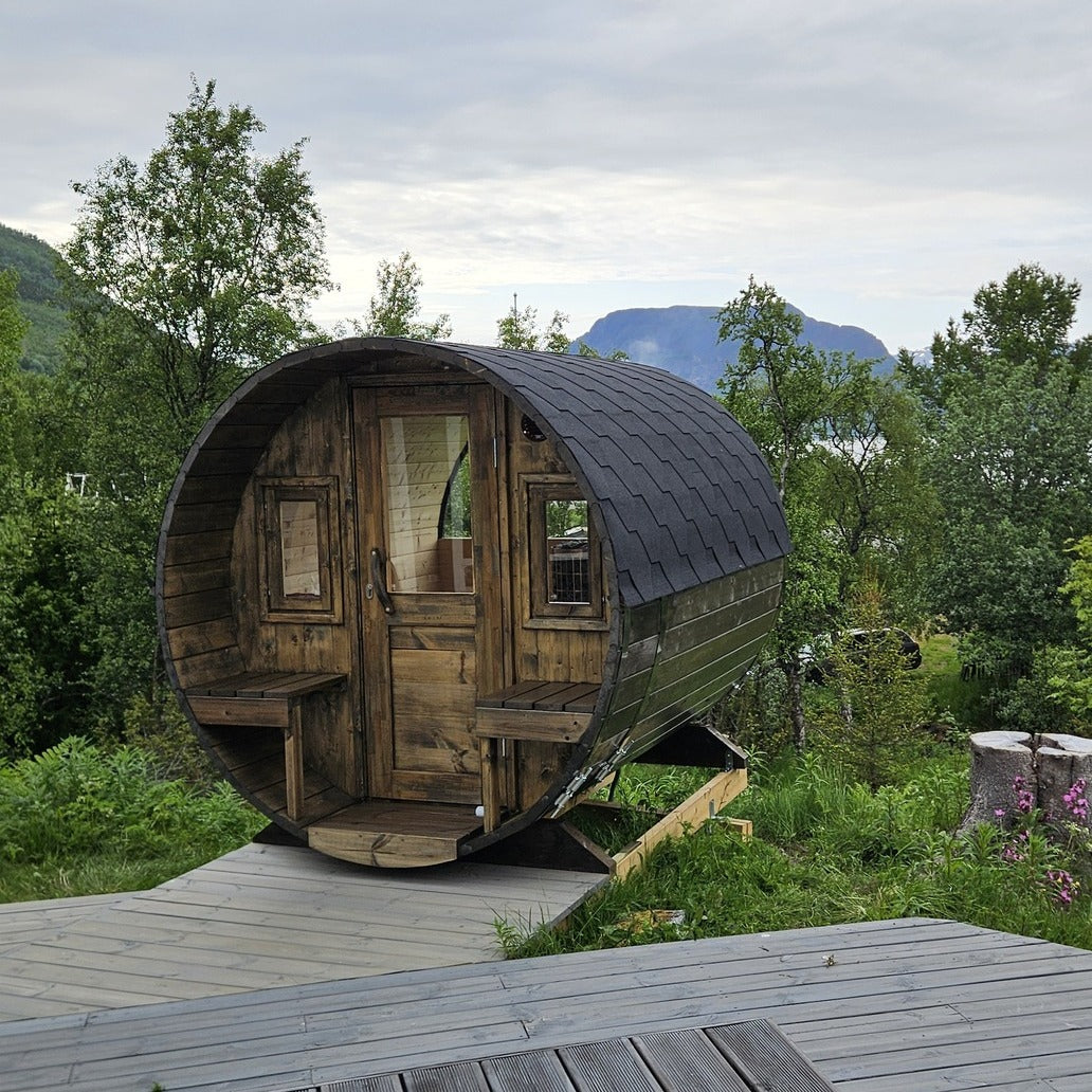 «Vi bestilte en Fjordtønne Bre i vår, og den ble levert rett på tunet. Ser faktisk bedre ut enn vi trodde, og vi har allerede hatt mange fine kvelder i den.» – Ingrid