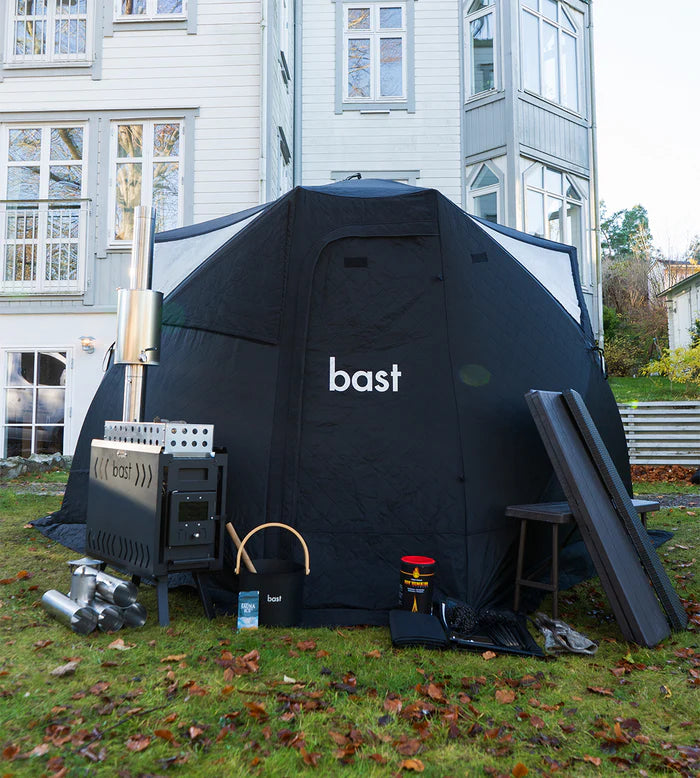 Bast Badstutelt er en stilren og plassbesparende badstuløsning, perfekt for hagen, hytta eller turer i naturen. Bygget med høy kvalitetsmaterialer for optimal varmeisolasjon og holdbarhet.