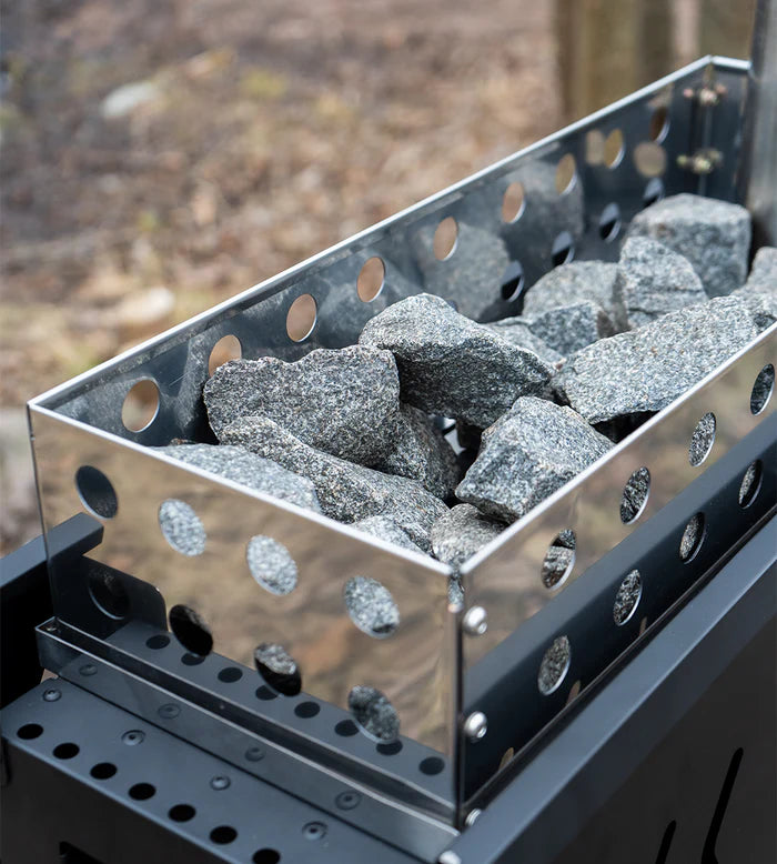 Den vedfyrte ovnen gir rask oppvarming og en autentisk badstuopplevelse. Badstuteltet er lett å montere og kan settes opp hvor som helst – uten behov for byggetillatelse. Designet for nordisk klima, slik at du kan nyte badstu året rundt!