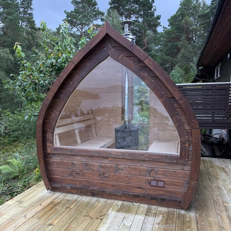 «Vi bestilte en Fjordtønne Bre i vår, og den ble levert rett på tunet. Ser faktisk bedre ut enn vi trodde, og vi har allerede hatt mange fine kvelder i den.» – Ingrid