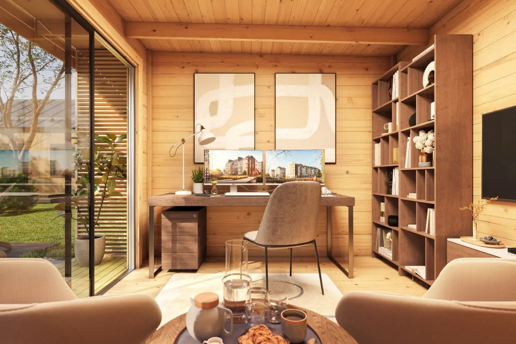 Anneks Sebastian er et moderne og funksjonelt anneks som passer perfekt som hjemmekontor, gjesteanneks, hobbyrom eller ekstra oppholdsrom i hagen. Med solide 44 mm massive vegger i nordisk gran, store skyvedører i aluminium og flatt tak får du et stilrent uttrykk kombinert med god komfort.