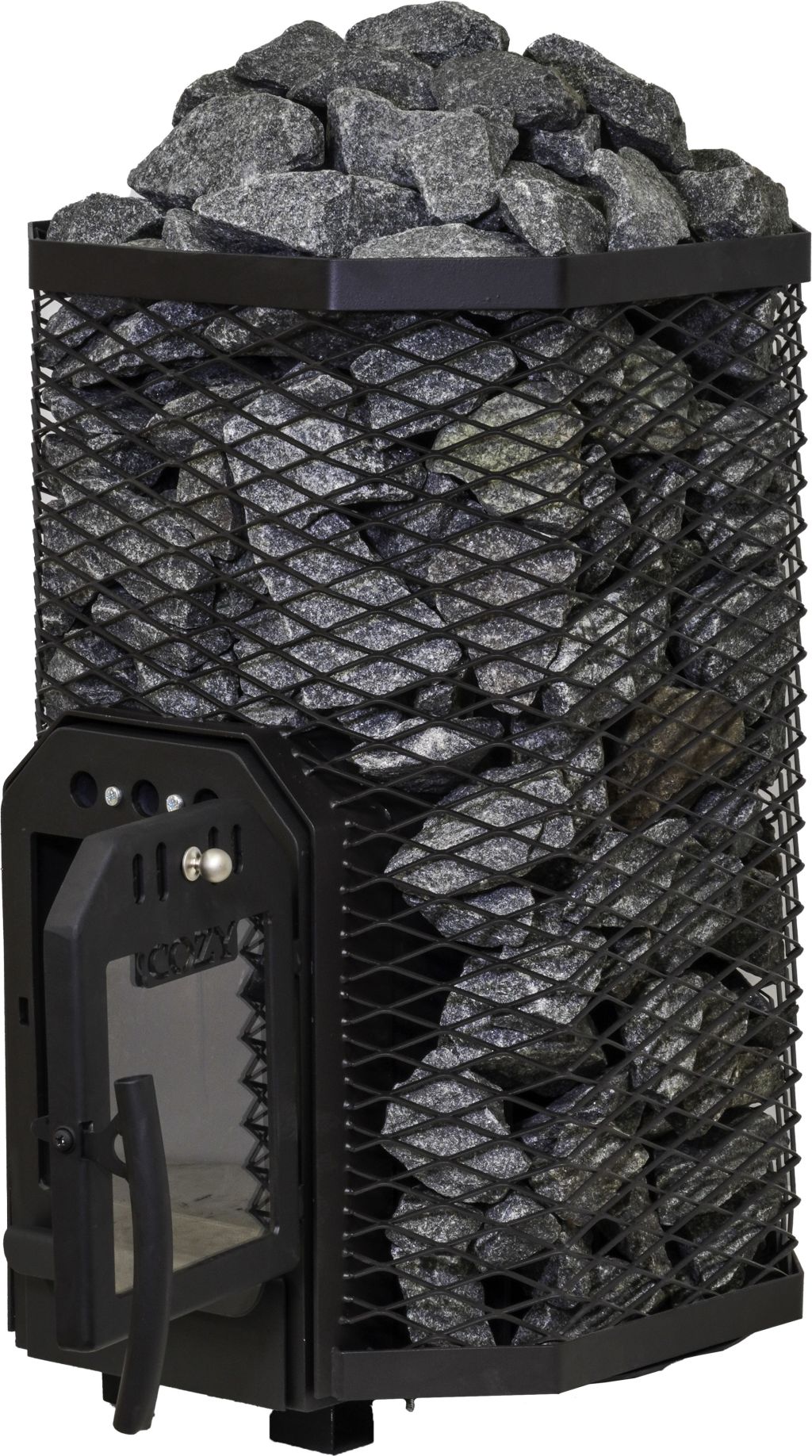 Cozy 12 er en kraftig vedfyrt saunaovn med et unikt design og stor steinkapasitet for maksimal damp og varme. Med en effekt på 11,5 kW passer den perfekt for badstuer på 6–12 m³. Ovnen har en åpen steinplass som rommer opptil 120 kg sauna-steiner, noe som gir jevn og langvarig varme.