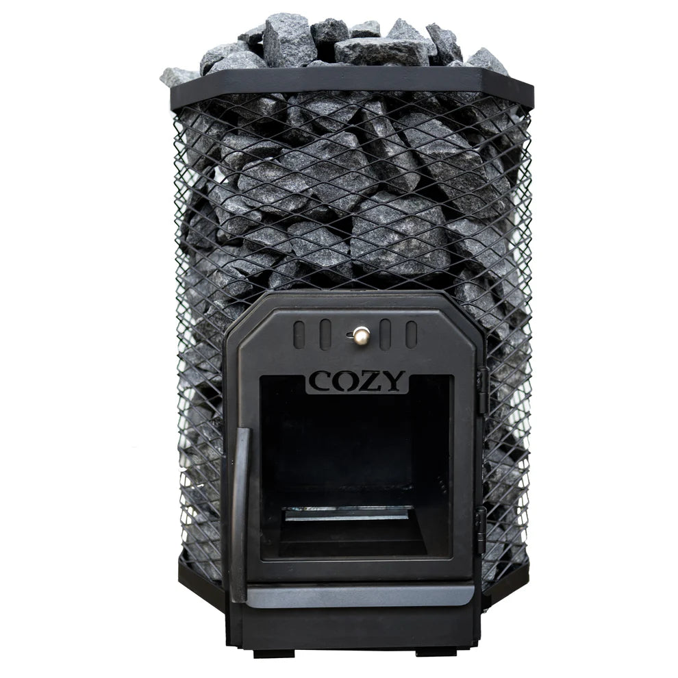 Cozy 18 er en kraftig vedfyrt saunaovn utviklet for større badstuer og maksimal dampopplevelse. Med en effekt på 18 kW og åpen steinplass som rommer opptil 160 kg stein, leverer ovnen jevn, langvarig varme med lavt vedforbruk.