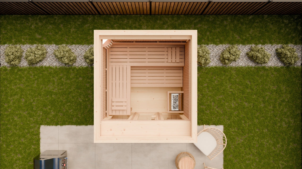 Innredning: Laget av spesialutvalgt myktre, kvistfri og harpiksfri, lav varmeledning. Inkluderer 2–3 benker, flyttbar nedre benk, 1–2 ryggstøtter, benkepanel, ovnsbeskyttelse, 2 hodeputer og 1 badstulampe