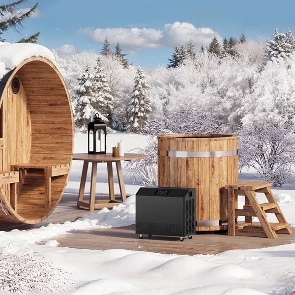 For optimal temperaturkontroll kan en ekstern kjøleenhet kobles til for å holde vannet iskaldt året rundt. Kjøleren kan også fungere som varmeelement for en mer behagelig temperatur ved behov.