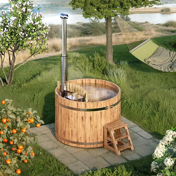 Fjordstamp Kyst kombinerar klassisk design med en kompakt och effektiv värmelösning. Med en vedeldad kamin placerad inuti badtunnan får du en autentisk bastuupplevelse med enkel och naturlig värme. Perfekt för stugan, trädgården eller fritidshuset – njut av varma bad året runt.