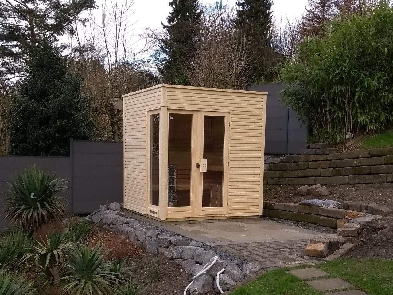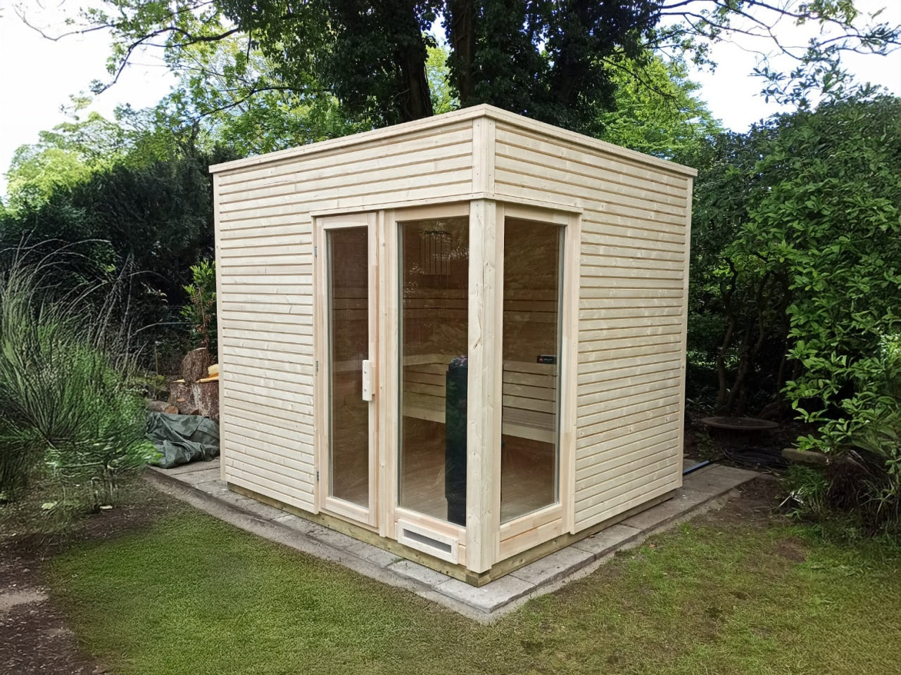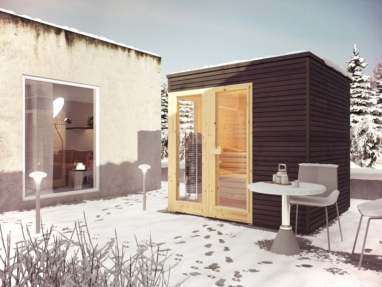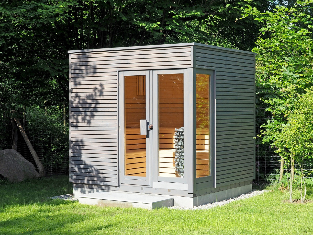 Solhagen badstu kombinerer elegant design med høy funksjonalitet. Den har et moderne uttrykk med store vindusflater som slipper inn naturlig lys og gir en romslig følelse. Perfekt for deg som ønsker en stilren badstueopplevelse i hagen.