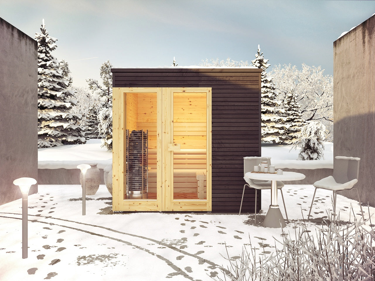 3-seters design i spesialbehandlet mykt tre, lav kvist, harpiksfri, lav varmeledning