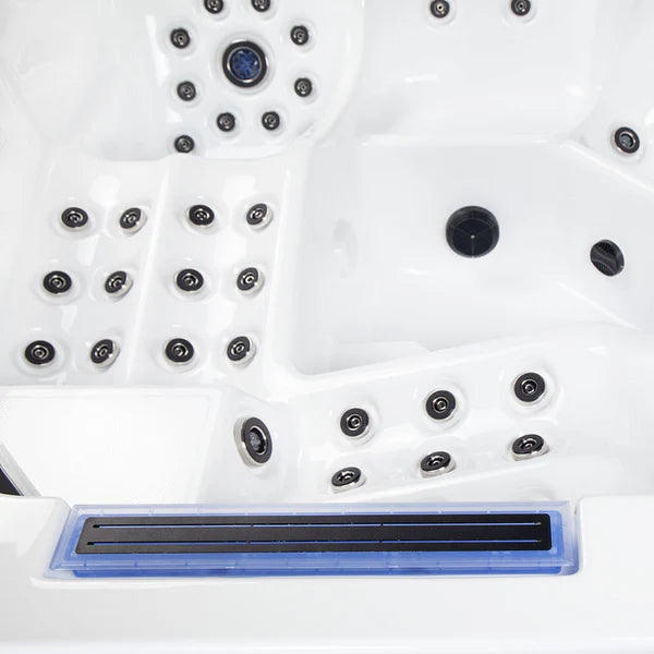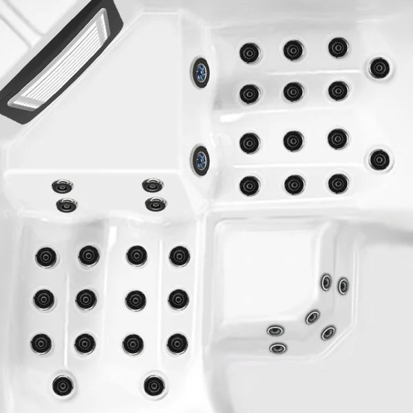 Spabadet har central RGB-belysning och 14 upplysta jetstrålar som skapar en exklusiv och stämningsfull atmosfär. MyMusic™ 2.0 levererar kraftfullt och klart ljud, anpassat för spa-användning, och du kan enkelt ansluta via Bluetooth – utan behov av externa enheter.
