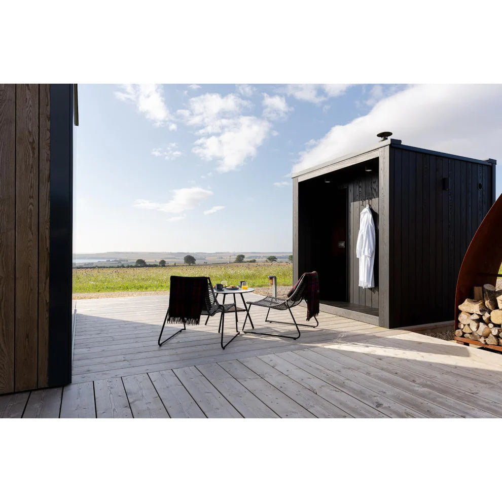 Skapa din egen privata oas med ÖÖD Mini Sauna – en lyxig och modern bastu med panoramautsikt. Denna bastu är utformad för att smälta in i omgivningen och kombinerar stil, komfort och funktionalitet.