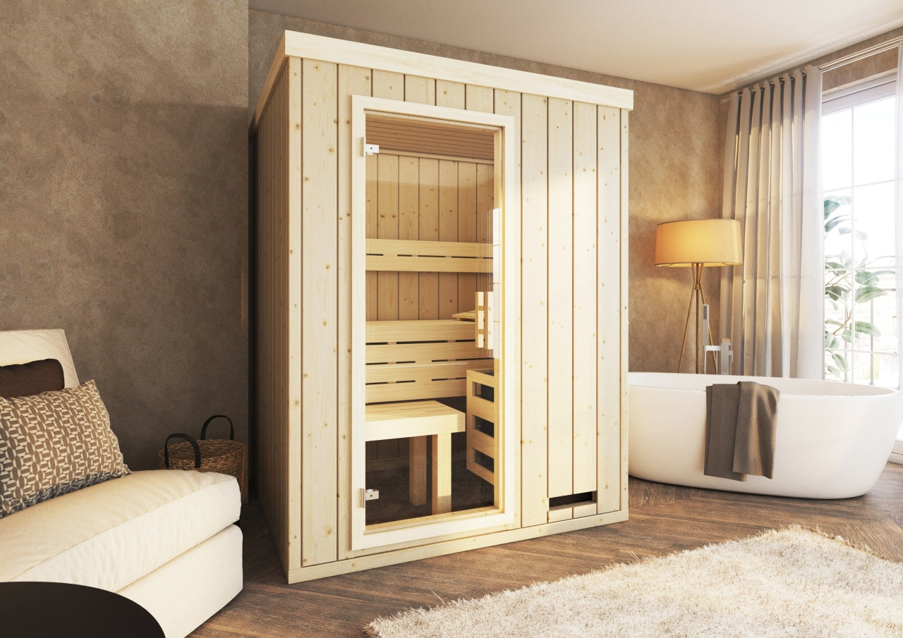 Caroline Mini är en kompakt och elegant bastu som passar perfekt in i alla hem. Den kombinerar modern design med naturligt trämaterial för att ge en avkopplande och elegant bastuupplevelse. Trots sin lilla storlek erbjuder den hög komfort, hållbarhet och stil.
